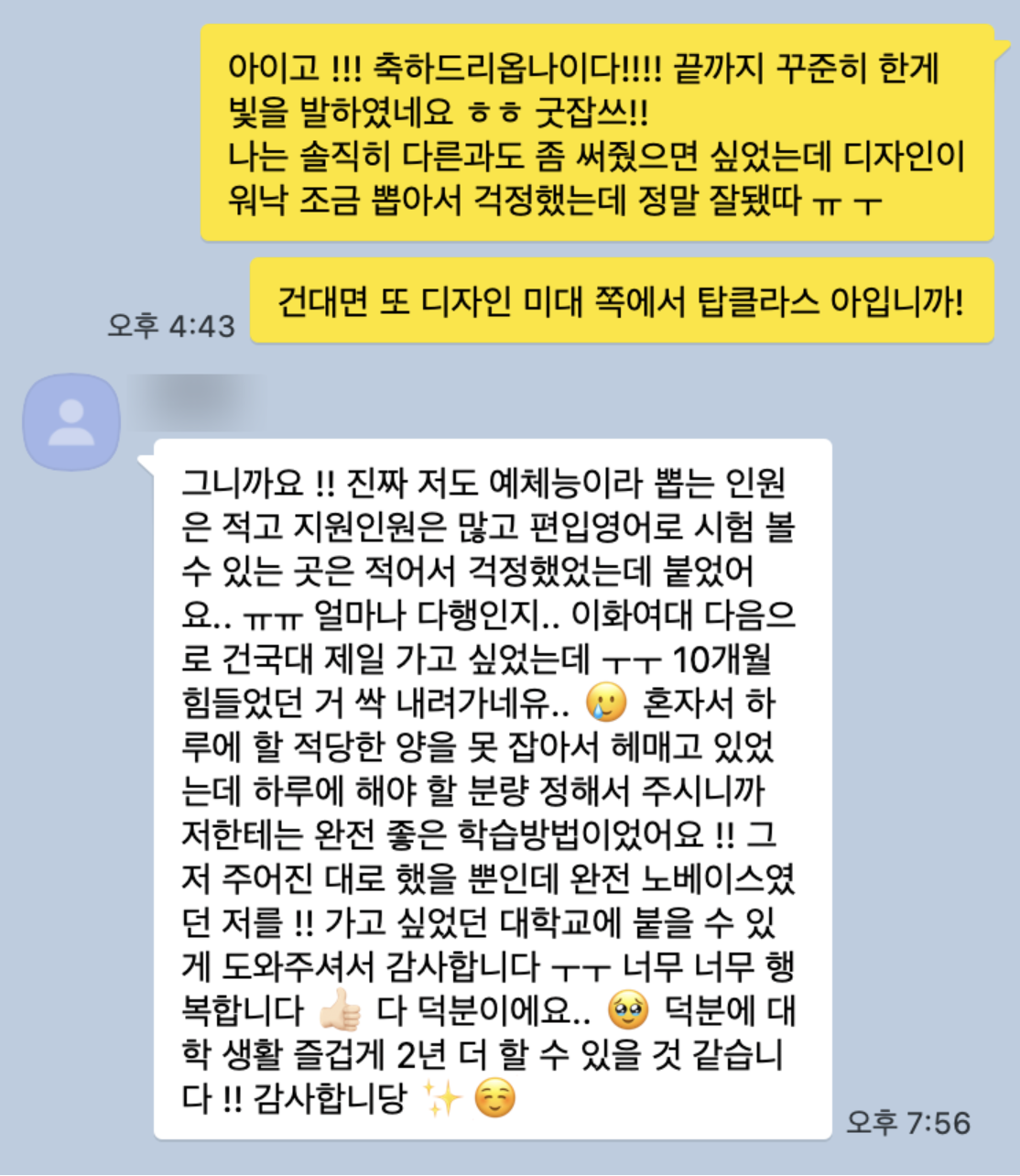 | 합격 대학 | 건국대(국제통상), 동국대(국제통상) | 건국대(공대), 경희대(공대) |