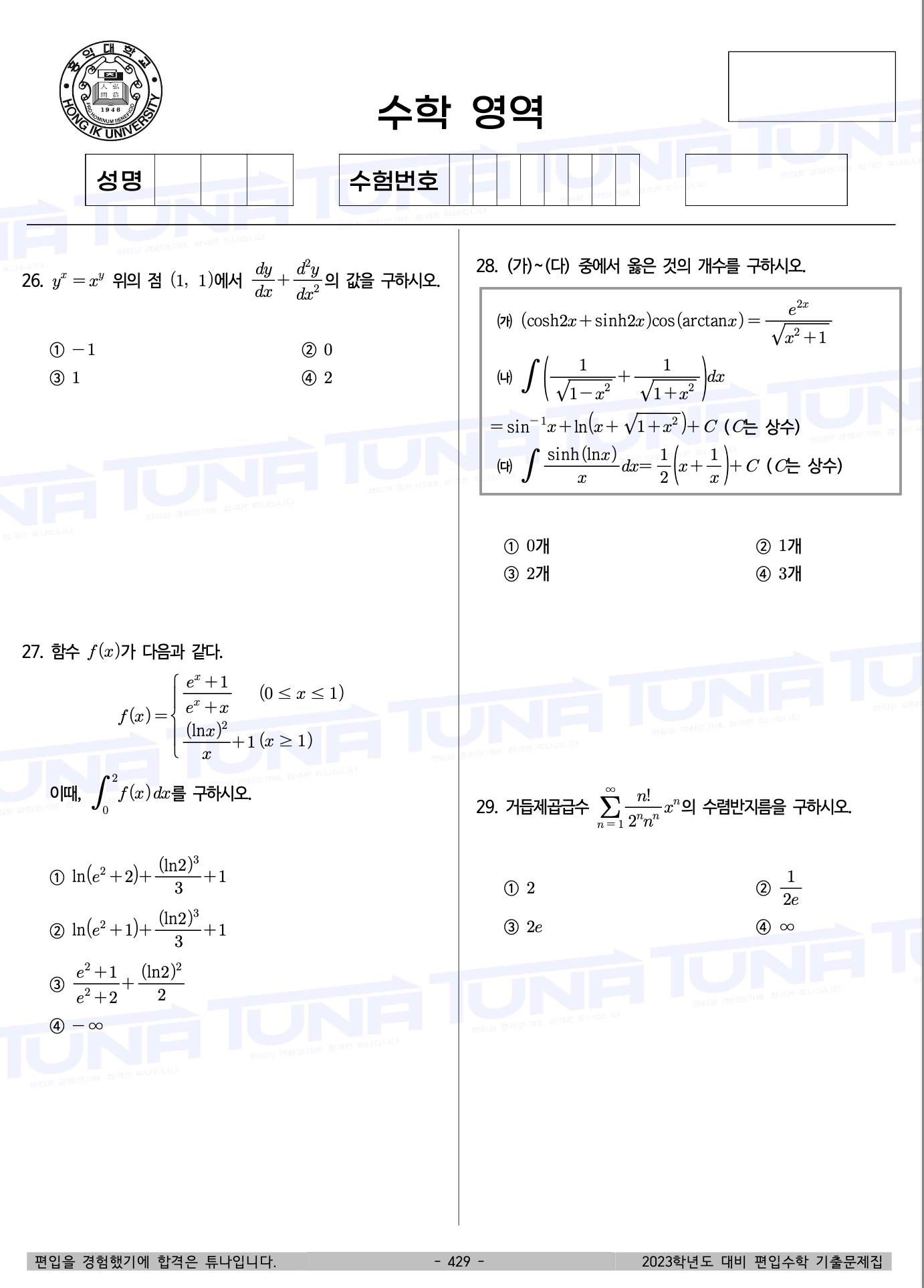 출제 범위가 매우 넓고, 타 대학 비주류 개념 출제 가능