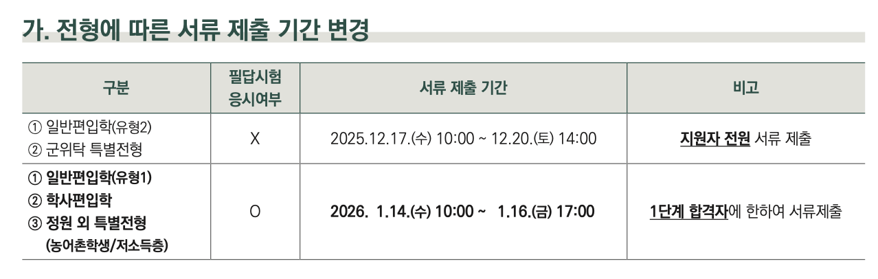 - 유형 2 추천: 전적대 국숭세단 이상, GPA 4.2/4.5 이상. 공인영어 성적(TEPS, TOEFL 등) 가산점이 있는 학생들에게 강력 추천.